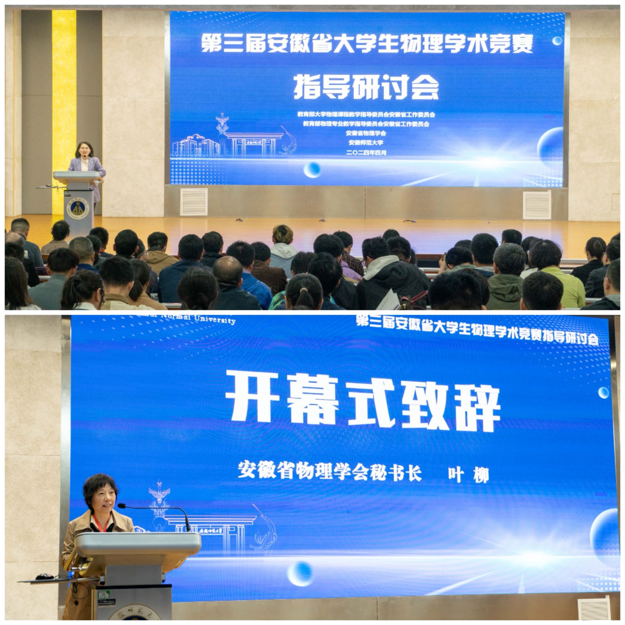 副院长张爱清主持,安徽省物理学会秘书长叶柳教授做开幕致辞。叶柳首先强调了CUPT赛事在培养学生运用物理知识解决实际问题的能力以及交流表达能力中的重要作用,希望通过此次研讨会进一步加深对CUPT重要性的理解,以竞赛为抓手共同推进省内高校教育教学改革和创新。
