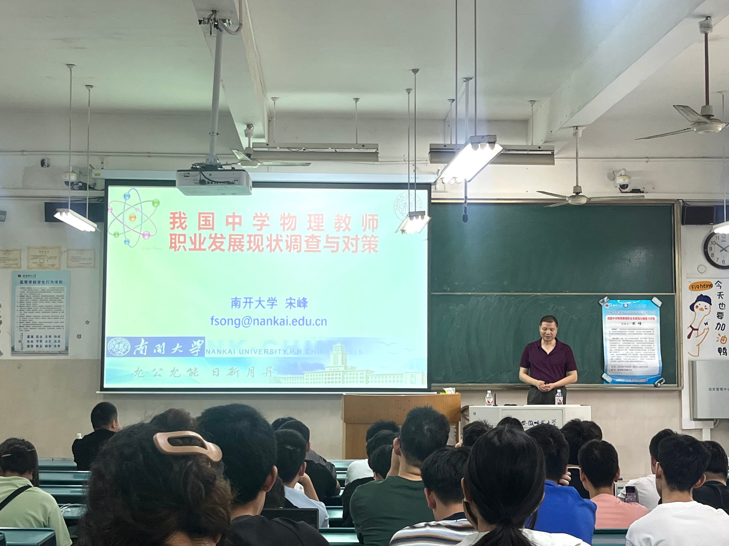 为进一步拓展师范生视野,促进师范生了解中学教学现状,7月20日上午,学院在教学楼3号楼104举办“名师面对面”第三期讲座。讲座特邀南开大学物理学院教授、博士生导师、中国物理奥赛队总教练兼领队宋峰讲授,讲座题目为《我国中学物理教师职业发展现状调查与对策》。讲座由学院副院长盛晓伟主持,小学期学生参会。