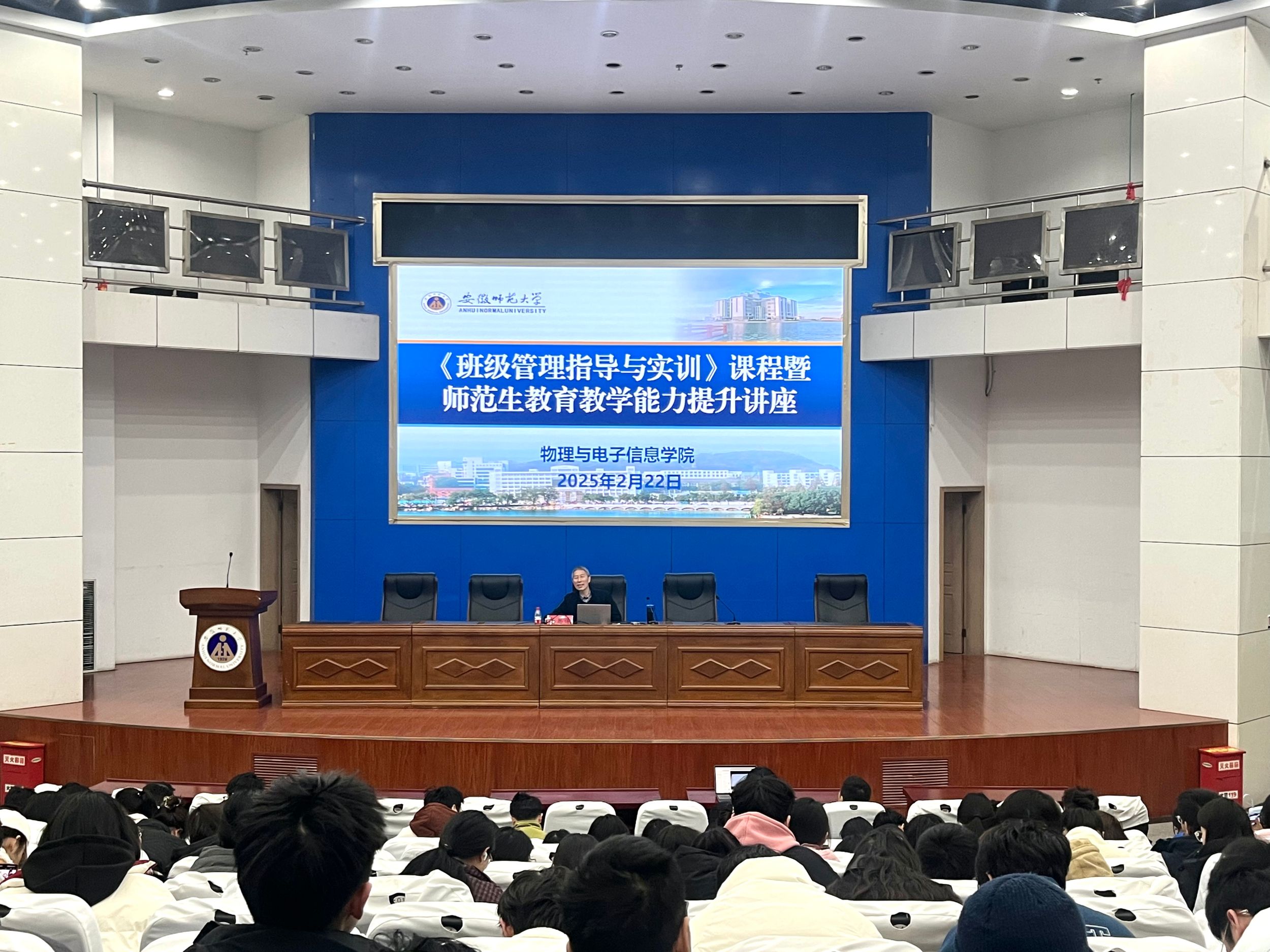 方升钱以《聚焦班级管理关键能力,促进师范生专业成长——班级管理的原则和策略》为主题,以教育家于永正"给初为人师的女儿20条贴心建议"为切入点,结合自身班主任工作经验,系统阐释了构建和谐班集体、激发学生潜能等核心问题。他着重解析了新时代班主任的角色定位、关键能力要求及班级常规管理策略,提出班级活动开展的"七镜意识"等创新理念,强调"教育者永葆教育激情与职业初心"的重要性。作为安徽省模范教师、长三角班主任基本功大赛一等奖获得者,方升钱通过真实案例与教育情怀的融合,为师生呈现了一场兼具专业深度与教育温度的讲座。