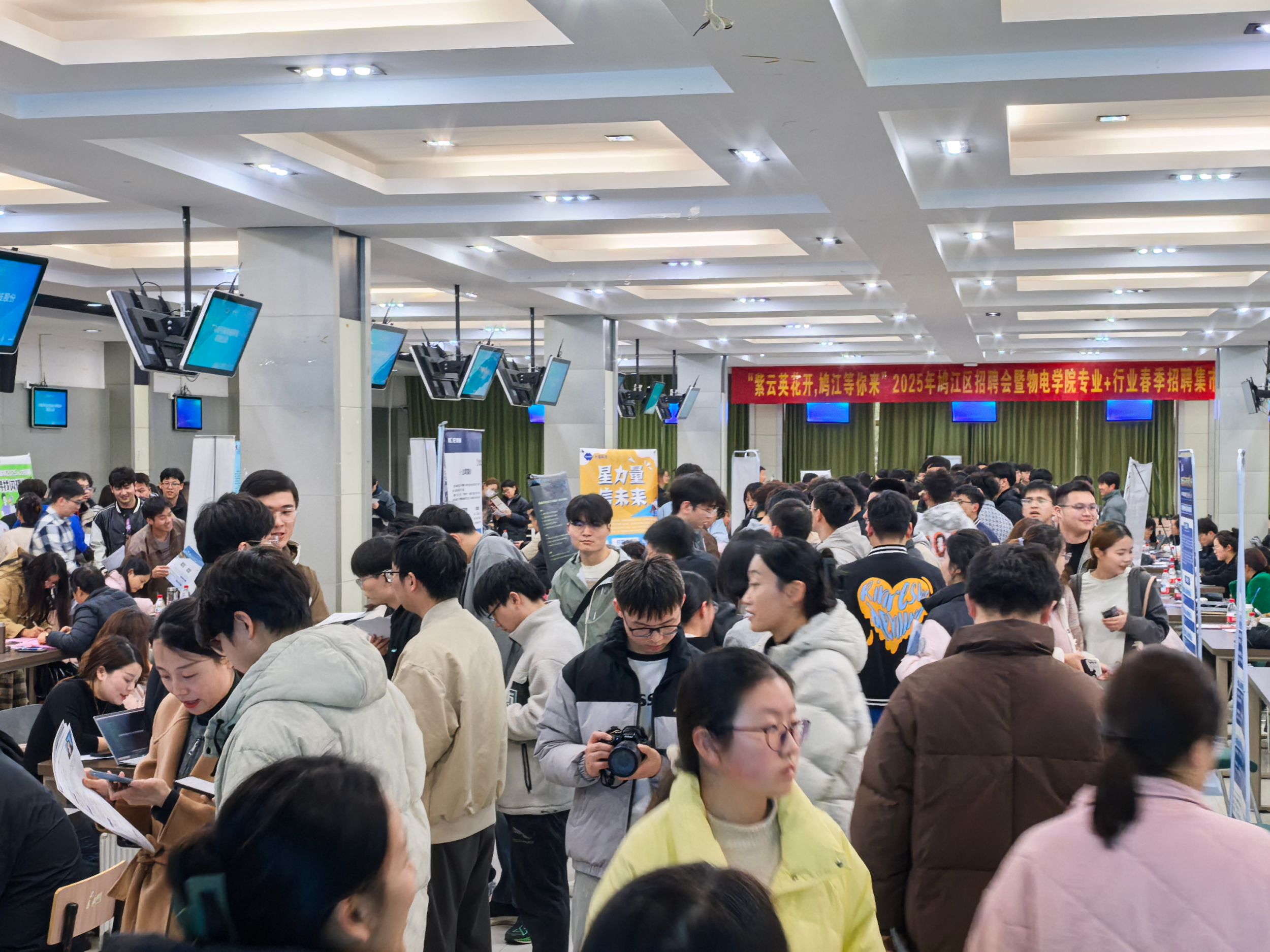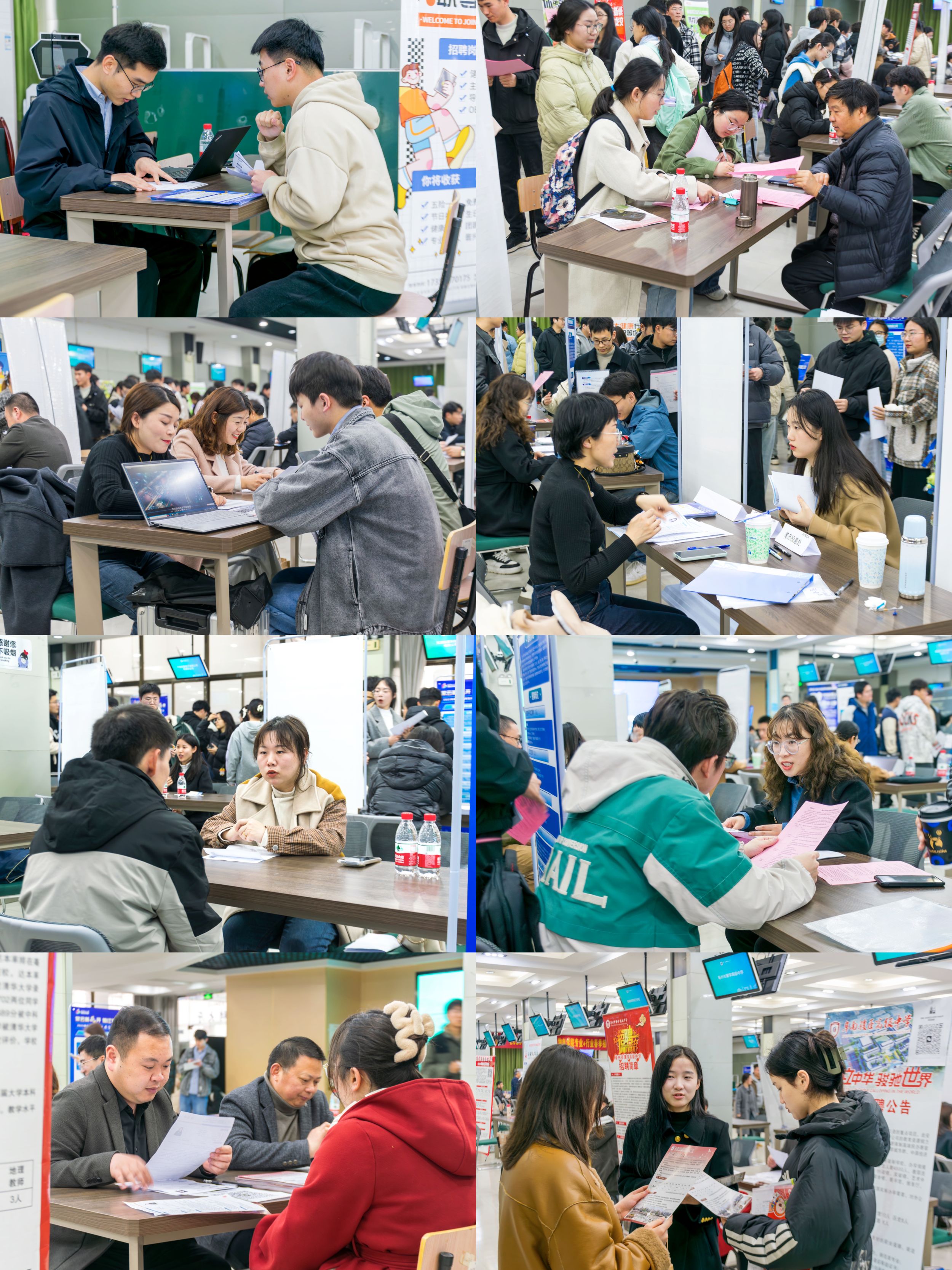 专业+行业春季招聘集市在大学生活动中心二楼招聘大厅举办。52家企业携1650余个岗位亮相,吸引1500余名学生参与。