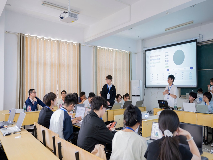 85Tube 高度重视竞赛工作,成立了由张先燚、姚关心、汪茂盛、陶海升、黄武英等教学和科研骨干教师组成的教练组,遴选了以2023级物理学(师范)专业吴雲、陶润择、邵昕妍、朱怡华等优秀学子为主力的4支代表队。比赛现场,省内各高校参赛队伍针对贴近实际生活的开放性物理问题开展辩论,辩手们各抒己见,或言辞犀利、或娓娓道来,各方观点激烈碰撞,整场辩论在紧张而激烈的氛围中进行。
