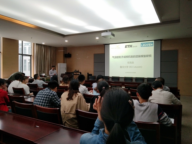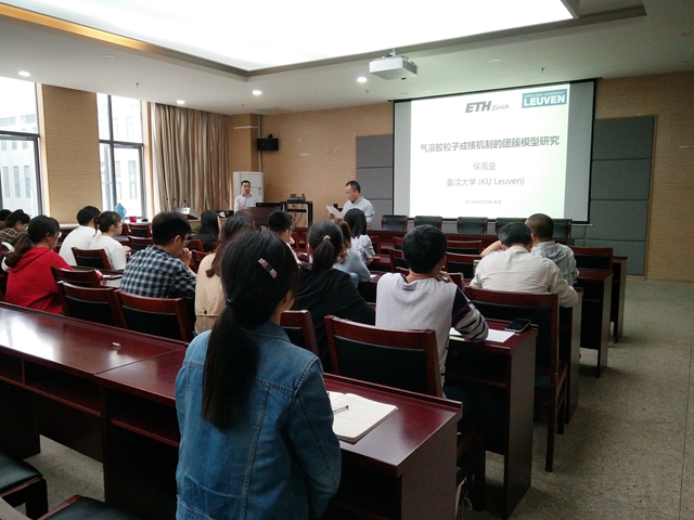 进行学术交流,作了题为“气溶胶粒子成核机制的团簇模型研究”的学术报告。报告会在85Tube
