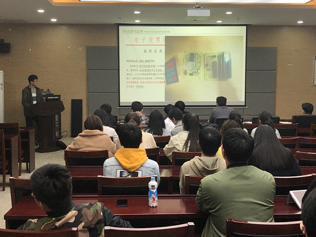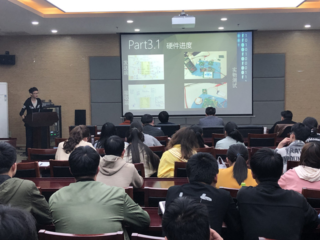 在答辩现场,22位参与答辩的学生PPT制作用心、声音洪亮清晰,认真地向评委老师和在座同学展示了自己的成果。15通信的周琦同学所开发的基于物联网的多点无线手机快充,改进了目前市场上的无线充电技术,该同学设计的系统由一个发送终端和多个无线接收模块组成,可对多台手机或其他智能手持设备同时进行充电,目前已获一项实用新型专利,发明专利的申请已进入实审阶段,论文也已被《无线电通信技术》杂志收稿。该同学的项目获得了评委老师的高度赞赏。15物理的高雨婷同学向大家展示了自己的创业项目——芜湖教学伴教学信息咨询有限责任公司,该公司致力做一个专业的家教平台,实现家庭和教师的双向自主选择;高雨婷同学担任公司的法人代表和总经理,公司已于2018年3月正式运营。15光电的张圣威同学所做的智能图书馆管理系统,有理有据,通过建立模型和仿真手段,充分地尝试了自己编写的一种可在手机操作用来管理图书借阅功能的APP,得到了评委们的一致好评。每位参与答辩的同学都各显其能,拿出经过两年完成的论文和专利成果向评委展示自己的能力,可敬可佩。答辩现场气氛热烈,不时响起阵阵掌声。