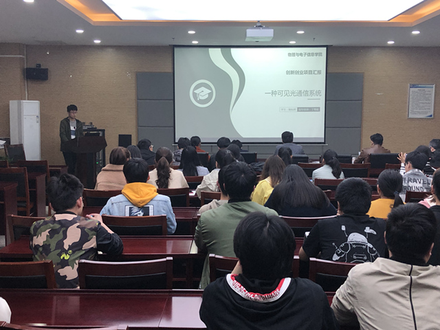 在学院三楼报告厅举办2017年大学生创新创业项目结项验收汇报工作。学院党委副书记黄友生、教学院长许新胜、物理学专业教师姚关心、通信工程专业教师冯友宏、自动化专业教师董国青担任评委。汇报会由学院教学秘书汪光麒主持。