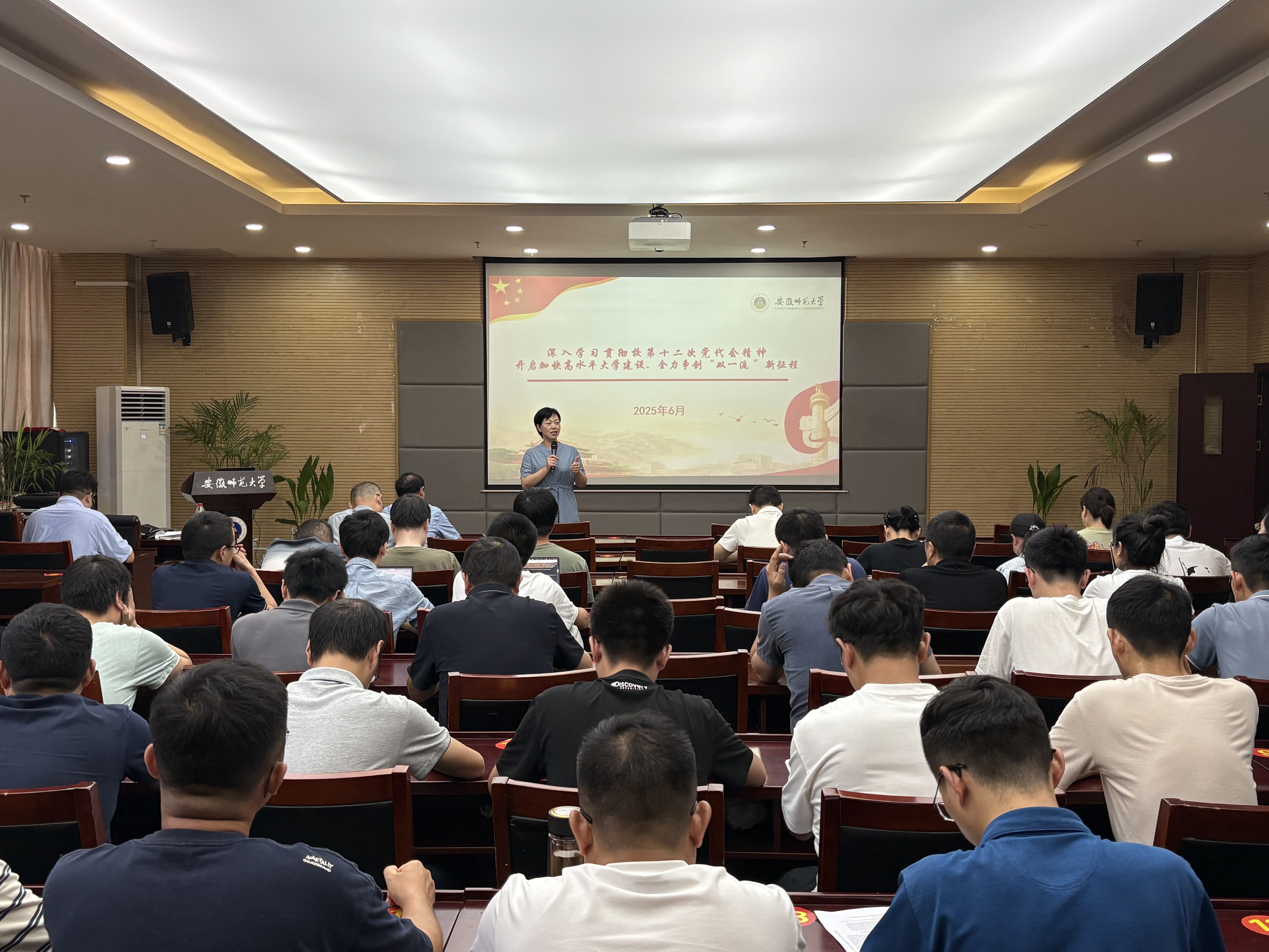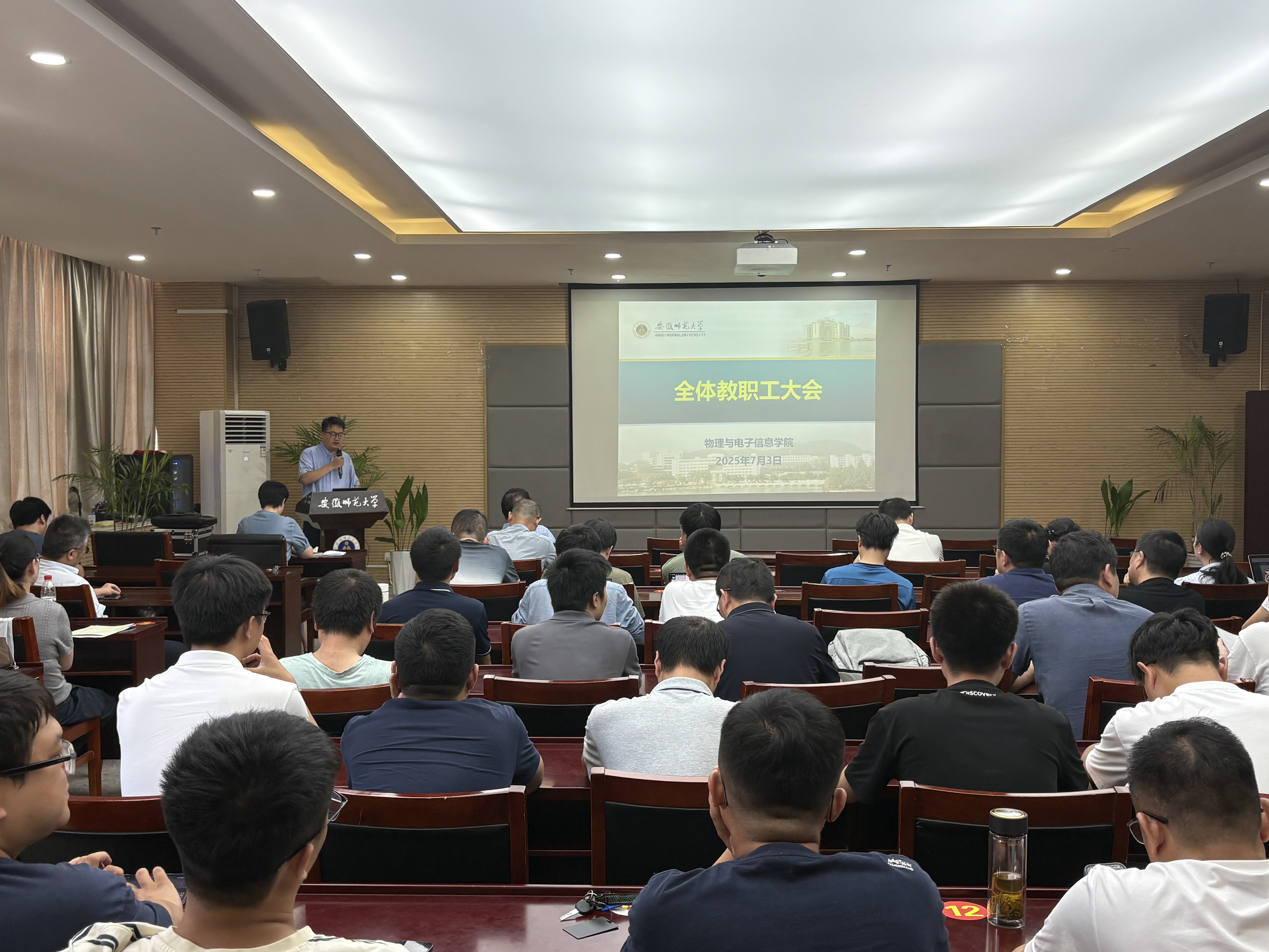 在物理楼304会议室召开全院教职工大会,传达学习学校第十二次党代会精神,总结本学期学院重点工作,部署暑期相关工作。学院党委书记宋静主持会议,学院全体教职工参会。