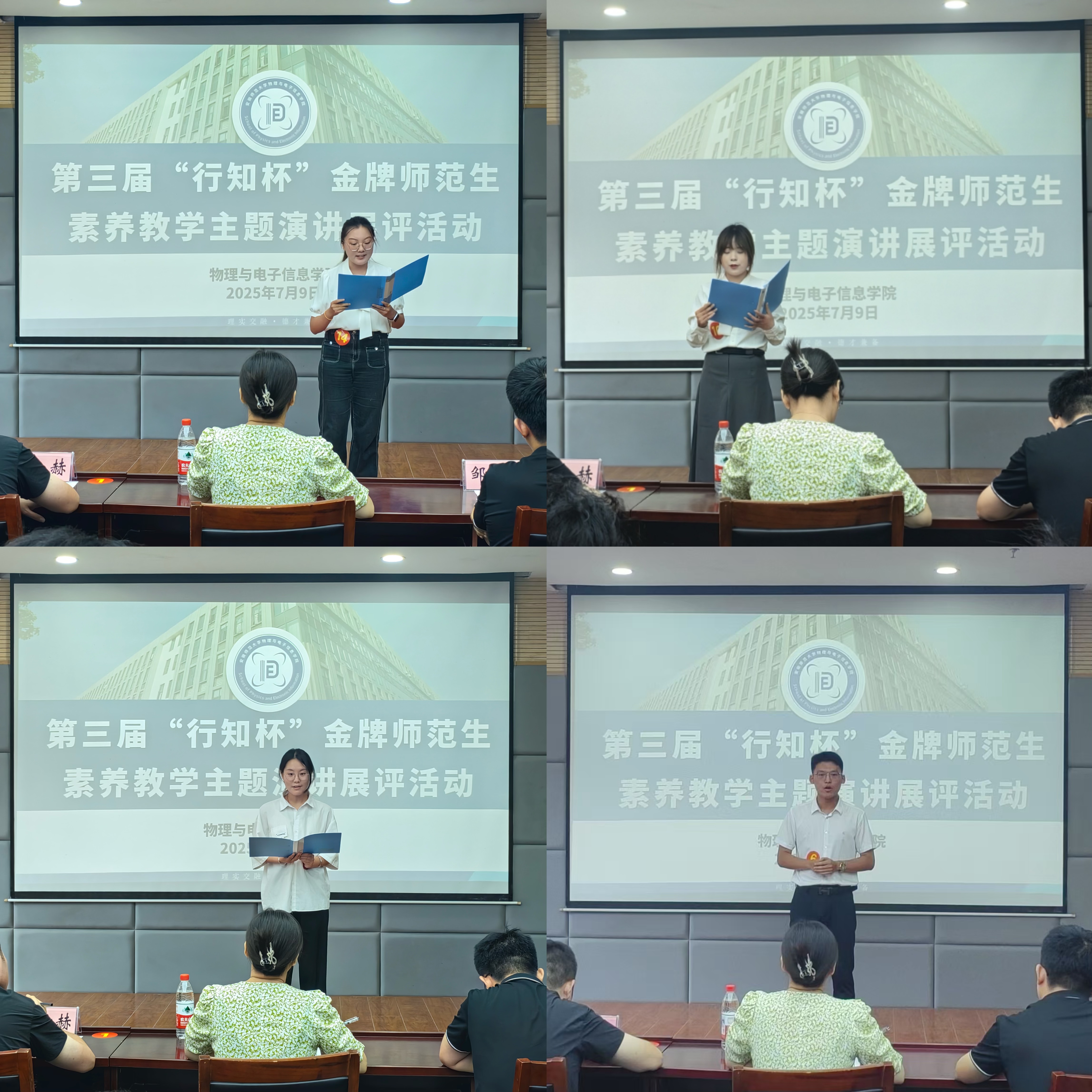 分赛别举办第三届“行知杯”金牌师范生素养展评活动。学院教学副院长张爱清,学院小学期特聘教师胡忠国、王伟、赵海燕,物理学专业教师汪志荣、王长江、徐玲、童大振、徐飞,学院团委书记布赫,物理学专业辅导员代表邹孝龙等出席本次活动。