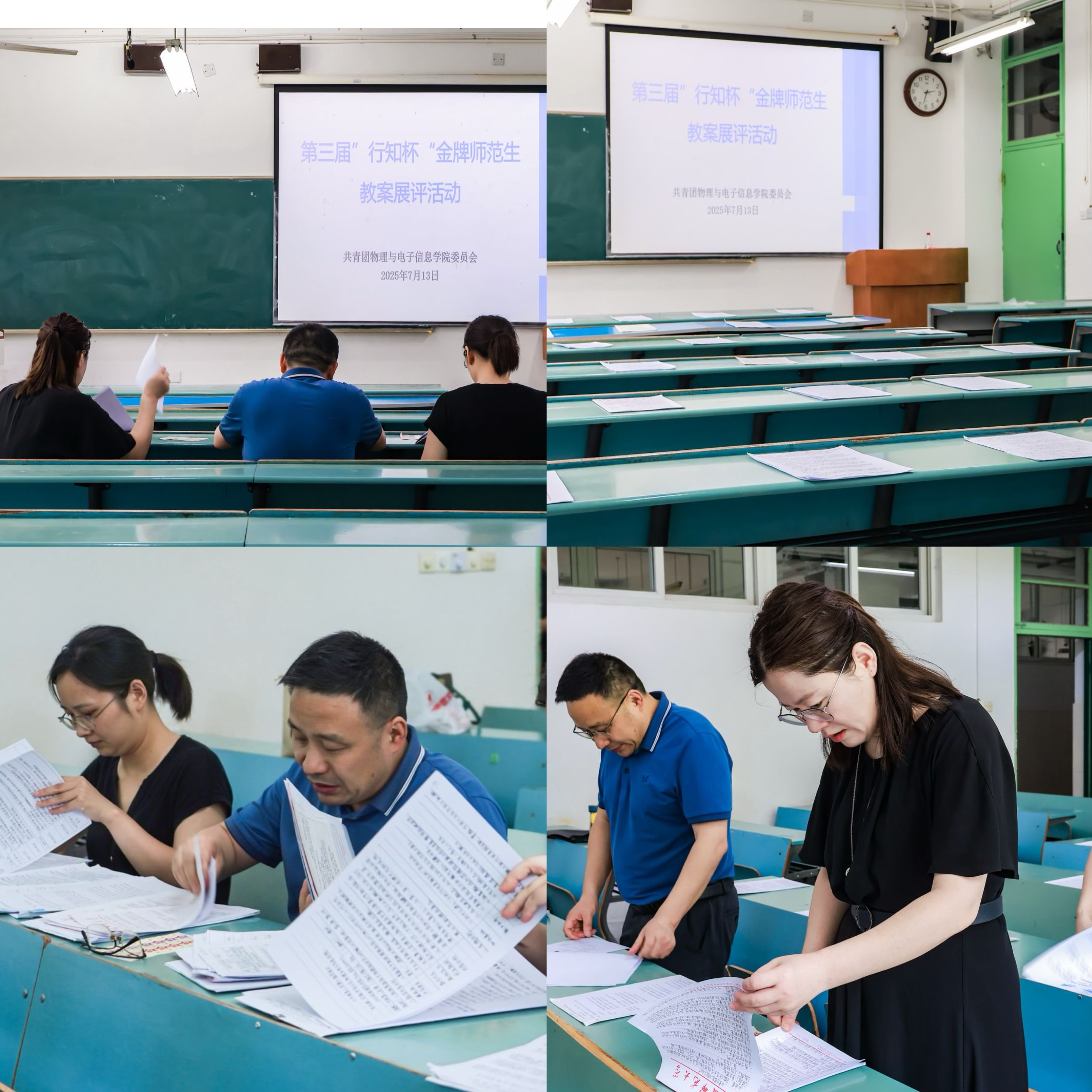 本次比赛分成教案展评、模拟授课、板书展评、主题演讲四个环节。参赛选手们精心准备、认真打磨,每一份条理清晰、书写工整的板书和教案,每一节声情并茂、精心设计的模拟授课,每一场激动人心的教师梦演讲,都展现出物电学子在本次暑期小学期实践中的丰富收获与深刻体会。比赛现场气氛热烈,以赛促学,赛中互鉴,展现了物电学子的风采。