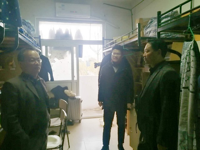 刘冠琪)为贯彻学校《关于做好2019年春季学期开学学生工作的通知》,2月25日开学第一天下午及晚上,学院全体领导班子成员和辅导员集中走访学生宿舍,看望寒假返校学子,了解学生思想动态及生活情况,给同学们送去关怀与问候。