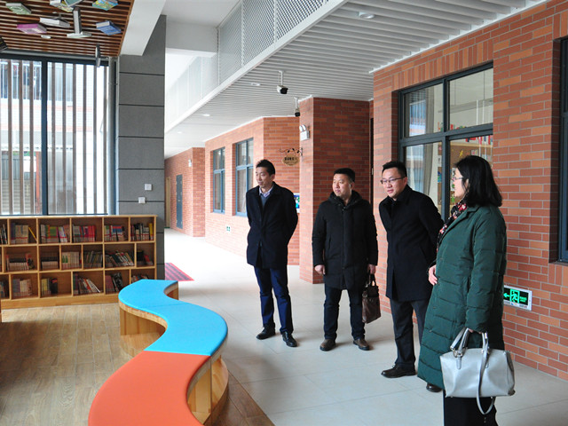 朱焱校长陪同学院一行人参观该校“西河雅集”“书画长廊”“创想空间”等课程基地和小学部。