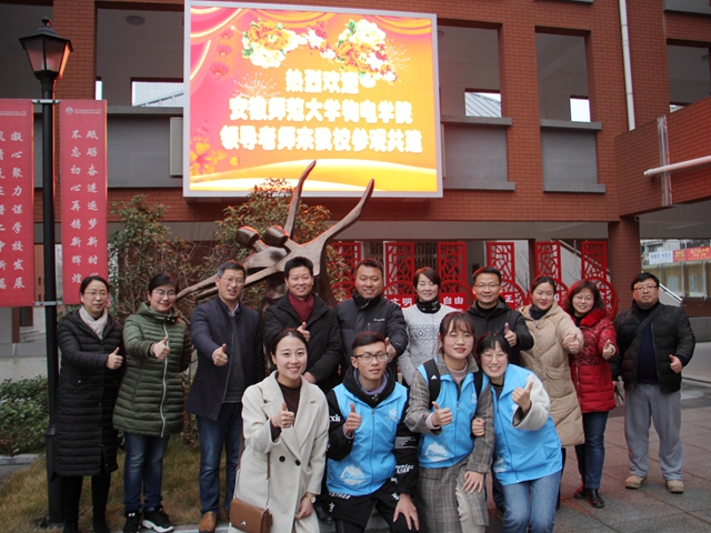 “金苹果”科普进中学行动走进了芜湖市第二中学。芜湖二中党委书记、校长李兵和其他全体班子成员、创客教育负责老师洪蕾,学院党委副书记黄友生、副院长许新胜、团委书记宋凤楼、辅导员刘冠琪及学生志愿者全程参加了活动。