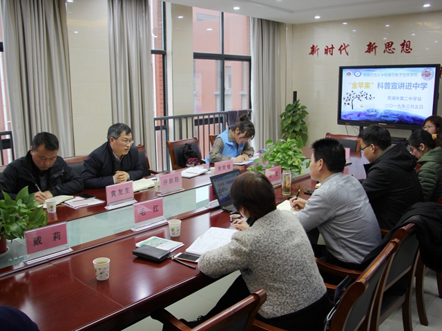 课后,双方就进一步深化合作召开了座谈会。“金苹果”科普志愿队队长韩梦婷对上学期的科普培训以及下一步工作计划向与会领导老师进行了汇报。二中创新培训指导教师洪蕾也从课程设置、教学方法、实验管理等方面提出了建议。会上,李兵从办学理念、办学思路、办学方针、发展方向等方面介绍了二中的发展历程和办学成就,提出了理念输入、技术支持、教师培训和实践基地等四个方向的合作规划。交流中,许新胜指出,作为作为安徽省基础教育的“母机”和教师教育的“龙头”,响应中央和省委“推进优质基础教育资源下沉”和服务地方基础教育发展是安徽师大义不容辞的责任与义务,双方在人才培养、科学研究、竞赛辅导等方面还有许多实施切入点和合作增长点。他强调,下一步学院将进一步整合师资力量和专业资源,争取早日促成与芜湖二中的全面合作,实现共赢。讲话中,黄友生感谢芜湖二中给予85Tube