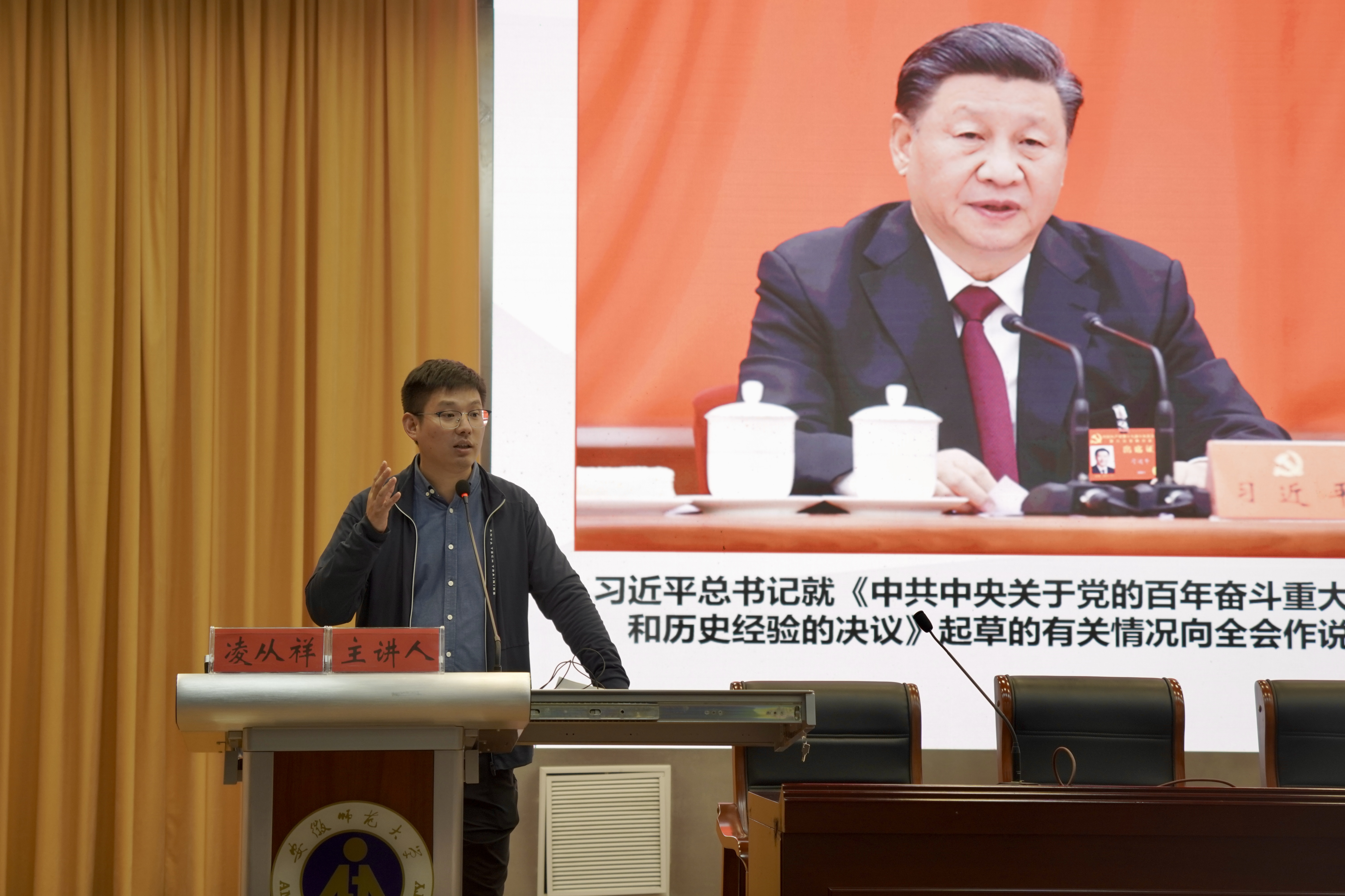 党委在理科大楼报告厅和文典楼西侧报告厅分两场举办2025级新生入党启蒙教育活动。学院2025级全体新生共679人参加。学院党委书记宋静、党委副书记凌从祥分别担任主讲人。