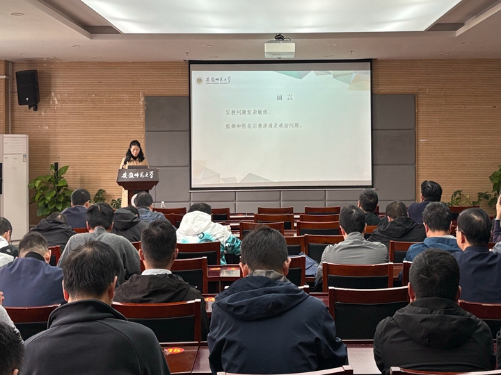 会上,学院邀请校党委统战部副部长李叶青为全体教职工作题为《抵御和防范宗教向学校渗透》的专题辅导报告。李叶青在报告中为教师们梳理了宗教相关科普知识,分析了当前抵御和防范宗教向高校渗透工作所面临的新形势和新问题,重点结合丰富的案例系统地向教师们讲解了国家相关法律法规和新时代党的宗教工作理论和方针政策,指导老师们按照“九个必须”的要求做好学生思想政治教育工作。