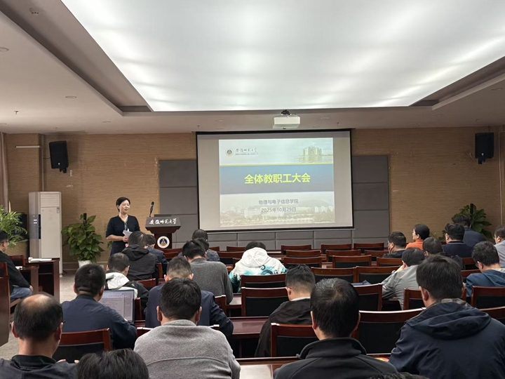 在物理楼304会议室召开全体教职工大会,开展相关理论政策学习,总结前期工作,布置近期重点工作。学院全体教职工参加会议,会议由学院党委书记宋静主持。