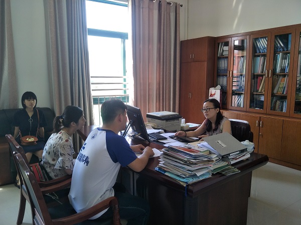 下午一点左右全体队员到达枞阳镇,全队和枞阳团县委钱书记、张副书记进行友好交谈。队长马瑞在和钱书记、张副书记进行交流,阐述了本次暑期社会实践的目的,向书记展示了本次社会实践的总体计划,并向书记了解了当地教学情况。张副书记带领队长和部分队员参观了本次的支教地点——旗山小学,了解学校的基本设施,帮助队员们进行后期教学活动。