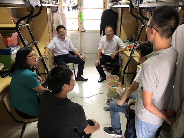 毕业生宿舍看望毕业生同学,并与毕业生亲切交流,为毕业生送去离校前学校温暖关怀和毕业祝福。学院党委书记李娟、党委副书记吴长义和毕业班辅导员陪同走访。
