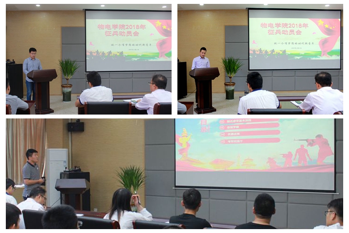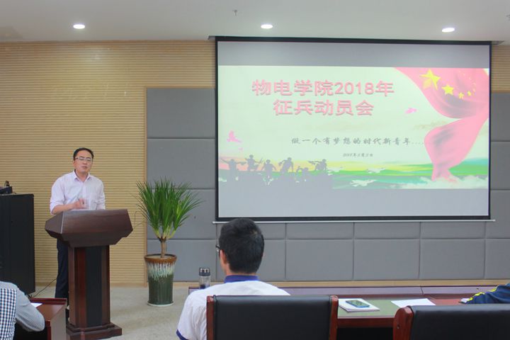 在理科大楼304会议室隆重召开了2018年征兵动员大会,院党委副书记吴长义、全体辅导员老师及各年级学生代表160人共同参加了此次大会,此次会议由辅导员张杰主持。