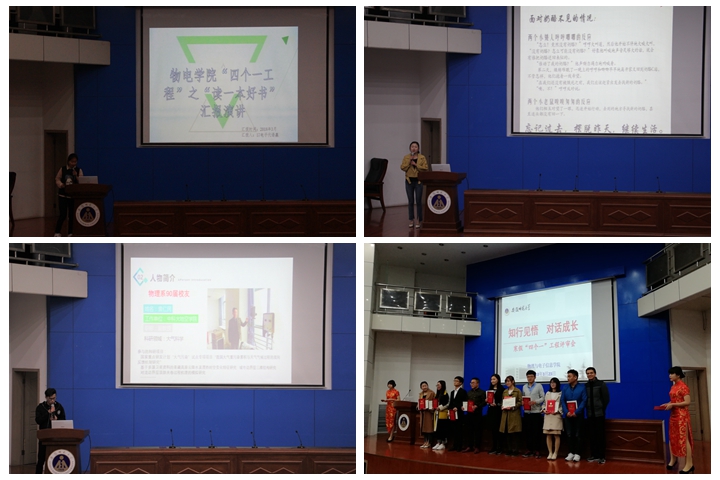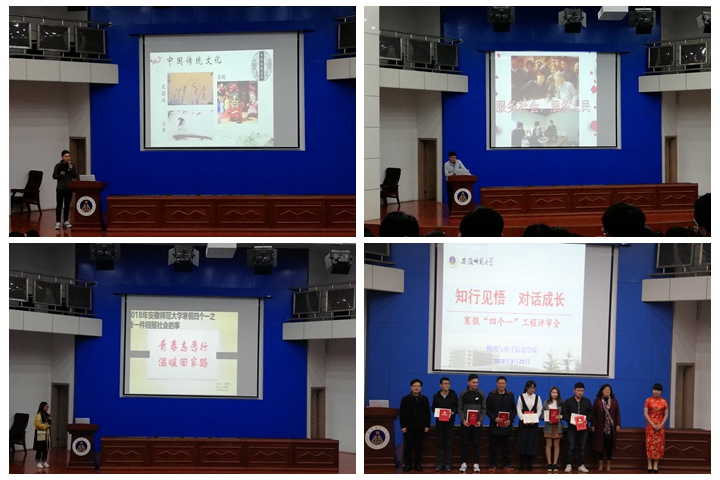 本着“一假一技能、一期一成长”的理念,结合专业特点,以“学做人 、行感恩 、提素质 、长技能”为活动宗旨,组织开展了“四个一” 工程主题实践活动,即读一本好书、走访一位优秀校友或成功人士、做一件回报社会或感恩的事、撰写一篇论文专利或课程设计。2018年3月23日晚,学院在图书馆报告厅举行“四个一”评审会,总结和展示“四个一” 工程活动的成果和收获。校党委组织部副部长谢超峰、校教务处副处长、创新创业教育学院副院长李汪根、校团委副书记汪凯、85Tube