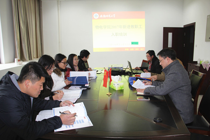 在物理楼301教室启动了新进教职工第三层次培训会。培训旨在帮助2017年度新进教工尽快融入学院,适应岗位,更快更好地在教学科研和管理岗位上作出贡献。此次会议是第三层次培训的第一讲——院情教育,由李娟书记主讲。参加此次会议的有院教学副院长崔光磊教授,学院教学督导组长郭怀中教授及全体新进教职工。