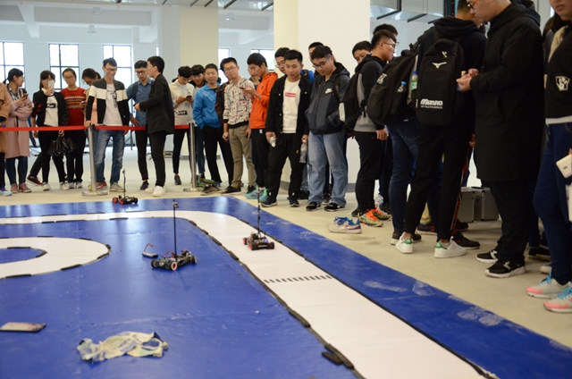 本次展会机器臂动了,小车跑了,机器人还跳舞了,飞行器也飞翔了,当眼前的实物动起来,同学们的脸上都充满着惊奇与兴奋。由于时间与场地的限制,新生们的参观是分时间段的,当参观时间到了之际,可以看出许多新生们还是久久不愿意离去。每看一件展品就会拿出手机拍照,还主动问工作人员问题,例如做成的时间长短、如何运作、工作原理等。