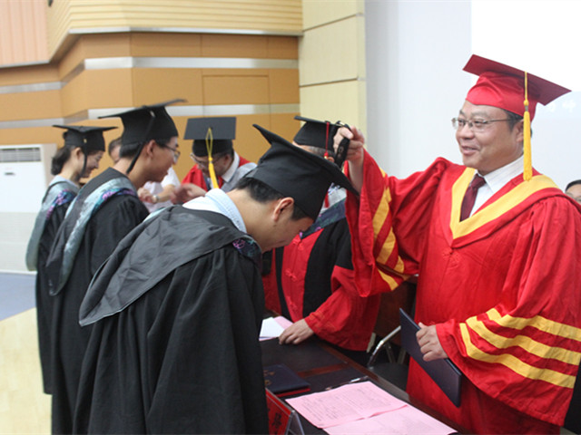毕业典礼在雄壮的国歌声中拉开序幕。校党委副书记李琳琦、学院院长崔执凤教授、副院长崔郑贤锋教授、学校教授委员会委员凤尔银教授、学院教授委员会副主任屈军教授分批向学生代表颁发毕业证书及学位证书,随后为每位毕业生代表行正冠拨穗礼。