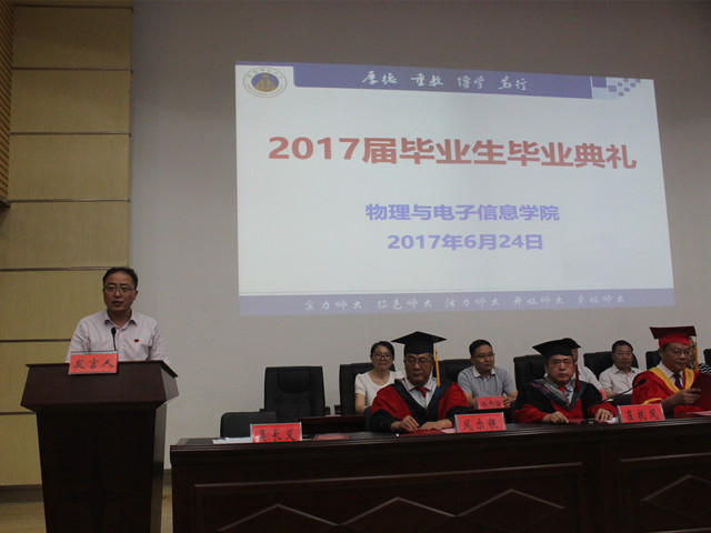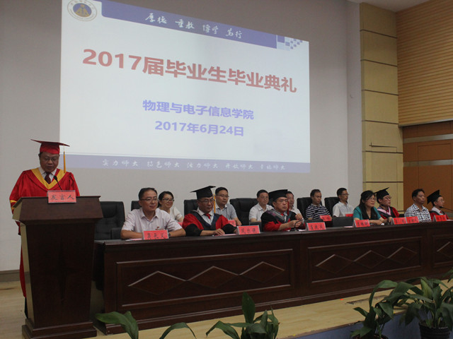 2017届毕业生毕业典礼在赭山校区科技小礼堂隆重举行。校党委副书记李琳琦、学院全体党政领导、各专业负责人、中心主任、教师代表、全体辅导员以及2017届全体毕业生参加了典礼。典礼由院党委书记李娟主持。