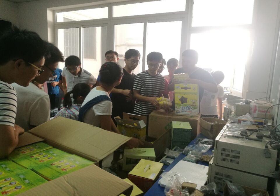 实训基地中,同学们认真阅读竞赛书籍,编写程序,调试电路的场景令学院领导十分欣慰。院党委书记李娟就此高度赞扬了集训同学不畏酷暑、坚守在电子制作一线的工匠精神,同时勉励大家,炎炎酷暑,参与集训的同学们更应抓紧每分每秒,投入到学习实践中,熟练掌握相关知识,锐意进取,克难攻坚,为即将到来的电子设计大赛做好充分的准备。同时,李书记也不忘关心同学们的生活,教育他们在努力准备电赛之余,也要关心自身身体健康,注意安全。同学们备受鼓舞,表示定会不负所托,全力以赴。之后,在相关负责人的带领下,学院向每个电赛小组发放了慰问品。