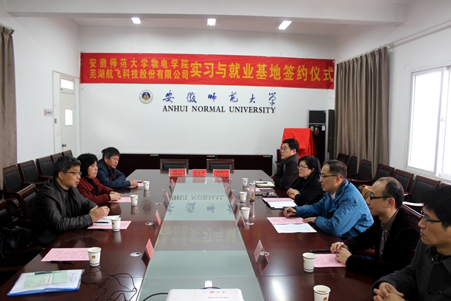 多名教授、博士从事的领域研究与航飞科技公司的产品研究联系紧密,学院相关专业学生也是贵公司需要的人才,实习与就业基地的建成将促进双方在人才培养、实习就业、项目研究等多方面交流与合作,对双方的发展具有重要意义。会上,双方就实习、就业、科技合作进行了深入洽谈,交换了意见。随后,李娟和陈之典分别代表安徽师范大学85Tube