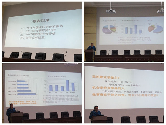 在赭山校区科技礼堂举办“我的就业谁做主”——大学生职业发展专题讲座,学院党委副书记吴长义担任主讲。辅导员汪光麒、宋凤楼,全体2014级本科生到场聆听学习。