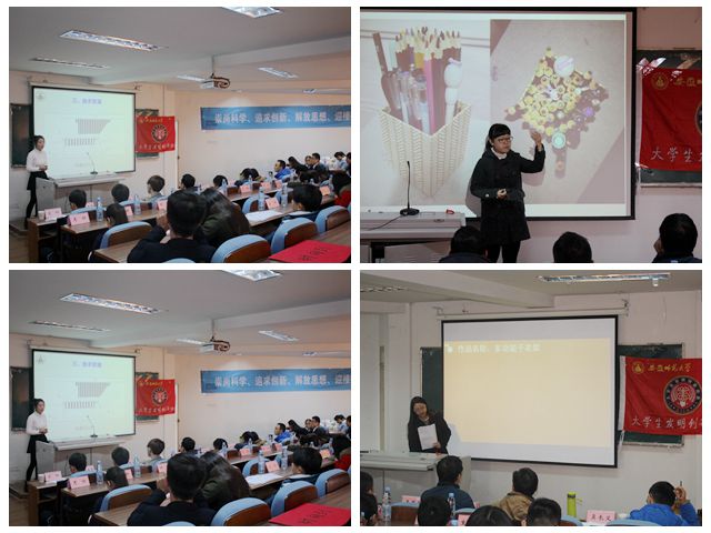 决赛中,16位选手用精心准备的PPT以图文并茂的方式从创意来源、制作过程和市场前景等方面展示了自己的创新创意成果。为解决阴雨天衣物难以晾干的问题,生科院侯梦霞同学设计了一种可以自动吹风多功能干衣架;结合专业学习实践,环工学院张娜同学介绍了一种橙皮速溶果珍的制备方法;根据学科竞赛参赛经历,85Tube