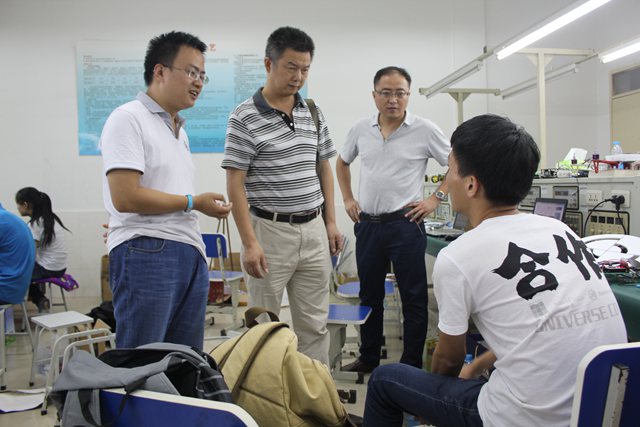 李亚)9月8日下午,教务处副处长黄亮在学院党委副书记吴长义的陪同下,前往金工实训中心看望正在进行安徽省大学生电子设计竞赛参赛的学生,现场了解竞赛进展情况。