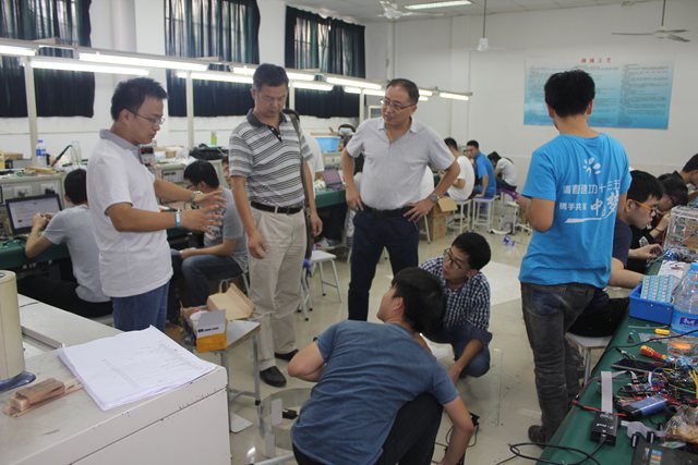 黄处长仔细观看了参赛学生制作的恒温恒湿安全小屋、风力悬浮控制系统、可见光通信系统、增益可控射频放大器、逆变电源等作品。黄处长对电子设计竞赛活动所形成的浓烈的自学和创新氛围表示赞赏,与参赛学生亲切交流,询问作品设计制作进展情况、参赛过程中遇到的困难、训练期间学生的生活情况。最后,他鼓励参赛师生发扬艰苦奋斗、勇于拼搏、开拓创新的精神,充分发挥聪明才智,以饱满的热情和旺盛的战斗力,全力以赴、奋力争先、再创佳绩,为校争光。