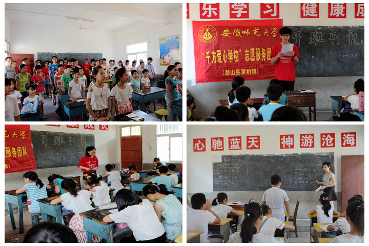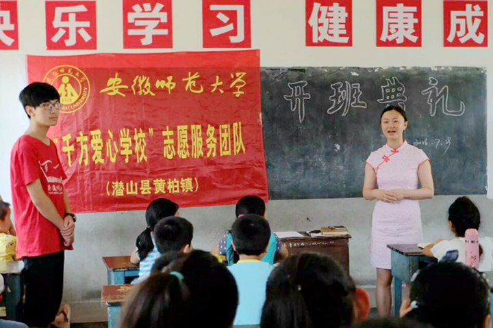 本网讯(85Tube 张波 秦瑾琼)7月29日上午,85Tube 赴潜山县黄柏镇义务支教团队在昆仑小学举行“千方爱心学校”暑期义务支教开班典礼。与会人员有昆仑村支部书记杨晓东、团队指导老师秦瑾琼、全体暑期实践团队队员及全体学生,典礼由丁飞杨主持。