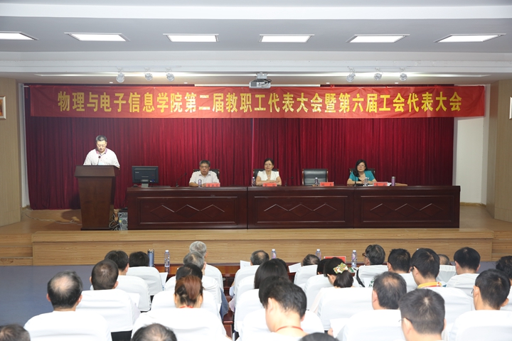 在赭山校区图书馆报告厅隆重召开第二届教职工代表大会暨第六届工会会员代表大会。校党委常委、纪委书记、教代会执委会主任程度,校工会主席、教代会执委会副主任赵红,学院教代会和工代会代表、特邀代表出席大会。