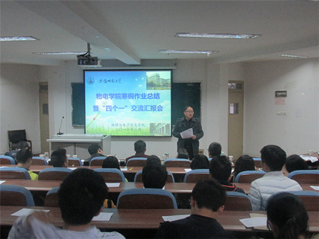 党委副书记吴长义、全体专兼职辅导员、各班级代表共同“批阅”了2016年物电学子的寒假作业。