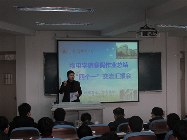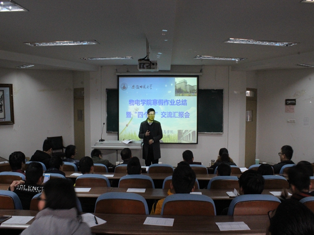 在综合楼三楼报告厅召开寒假作业总结暨“四个一”(争做一件感恩的事、走访一位优秀校友、撰写一篇论文(专利)设计、梳理一份大学心得)交流汇报会。校学生工作处思想教育科科长杨一飞、校党委宣传部宣传科主任科员张鑫、85Tube