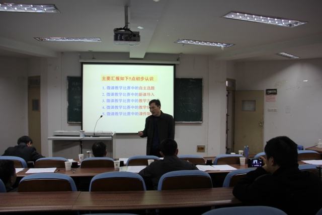 青年教师较高的学术素养与业务水平。评委对青年教师的教学能力予以肯定,针对选手的课件、教案、课堂教学进行了全面仔细的评点。黄时中教授对每个人的课进行了具体的点评,并就如何上好一节比赛微课,分别从自主选题、新课导入、教学方法、教学状态、课件制作等进行了详细的讲解。