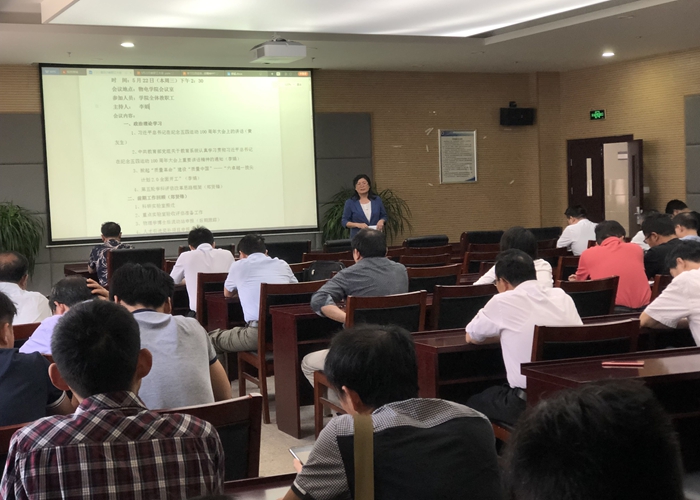 教职工大会上,院党委副书记黄友生带领学习了习近平总书记在纪念五四运动100周年大会上的重要讲话精神,李娟传达了《中共教育部党组关于教育系统认真学习贯彻习近平总书记在纪念五四运动100周年大会上重要讲话精神的通知》、教育部高教司吴岩的《掀起“质量革命”建设“质量中国”——“六卓越一拔尖计划2.0全面开工”》,院长郑贤锋带领学习了《第五轮学科评估改革思路框架》。