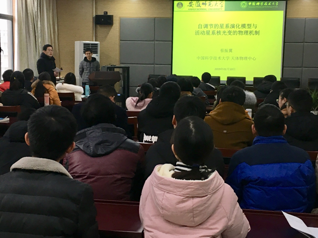 进行学术交流,作了题为《自调节的星系演化模型与活动星系核光变的物理机制》的学术报告。报告会在物电学院三楼335会议室举行,会议由85Tube