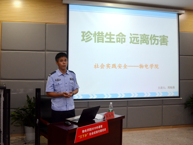 在物理楼335报告厅隆重举行2019年暑期“三下乡”社会实践启动仪式暨专题培训会。校团委副书记汪凯,社会实践思政指导老师李靖,学院党委书记李娟、副书记黄友生、副院长许新胜,指导教师代表张爱清、汪志荣、蔺玉柱,全体专兼职辅导员以及实践队员代表参加了启动仪式。仪式由学院团委书记宋凤楼主持。