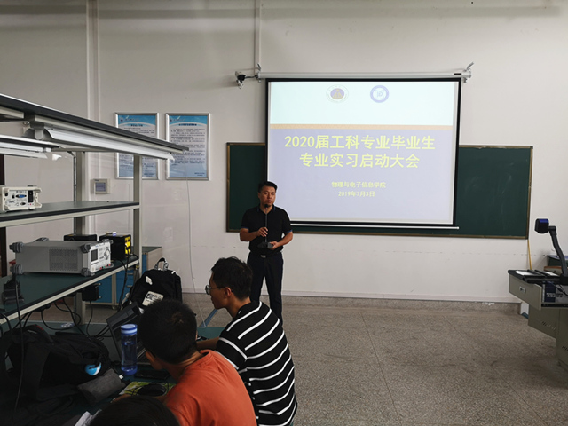 学院于7月3日上午在各实习场所组织了2016级学生专业实习动员大会。学院党委书记李娟、党委副书记黄友生、副院长许新胜、2016级本科生辅导员、实习公司的工程师按照实习分组情况组成三支小分队赴教学楼、物理楼实验机房、实训中心开展动员讲话。