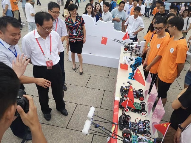 的科技创新作品展给予了充分肯定。科技创新作品展是对新生进行入学教育的重要一部分,学院认真筹划让专业实践走进迎新现场,营造浓厚实践创新氛围,帮助新生了解丰富的课外学术科技竞赛,激励学生要努力把握大学时光,学好专业知识,积极参与实践,赢得好未来。
