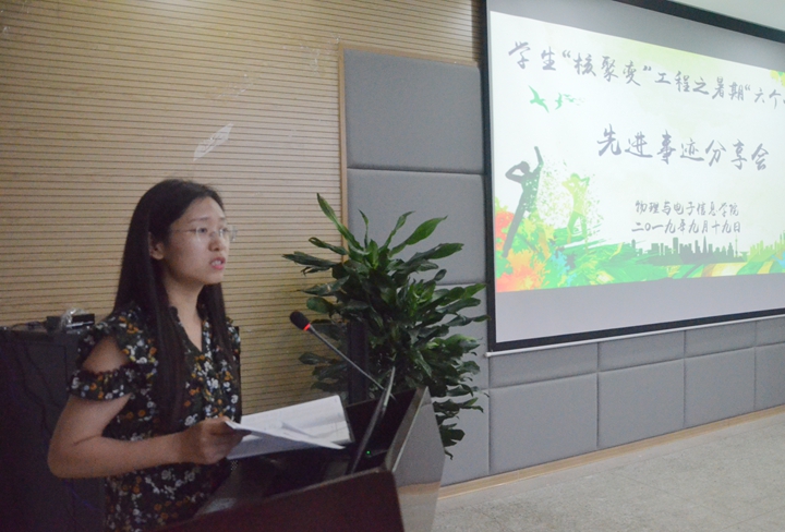 举办暑期“六个一”先进事迹分享会。学院党委副书记黄友生、团委副书记甘露、光电专业教师杨新艳博士担任评委。本科生专兼职辅导员以及2019级新生代表参加了分享会。分享会由学院团委书记宋凤楼主持。