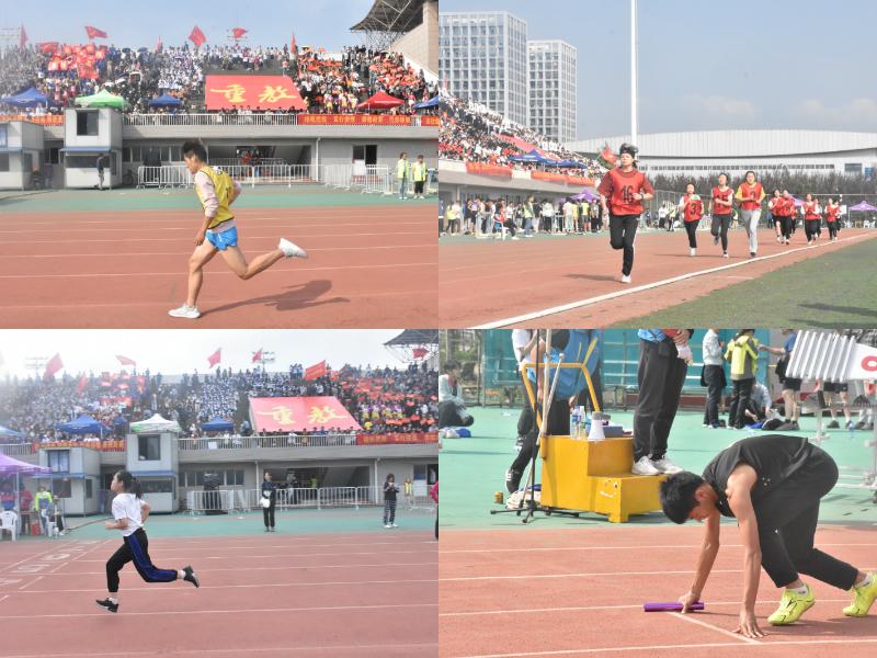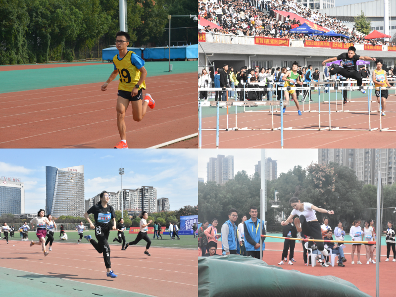 赛场驰骋,魅力无限。阳光明媚,是在为物电健儿充能鼓劲;湛湛蓝天,是在为物电健儿欢呼祝贺。在男子5000米决赛中,学院何聆子以17分1秒的成绩获得第一并打破校记录;在七项全能的比赛中,蔚杨、徐欣屡屡取得佳绩,最终的总成绩分别位于第二、第三;在男子 400 米栏决赛中,强娟重斩获亚军;项孙健、潘显赫获得男子跳高第二名、第三名;在女子 200 米的决赛中,孙雪蓉选手奋力冲刺,夺得季军;在女子4×100米的决赛中,物电女将英姿飒爽,夺得桂冠;这是属于物电健儿的荣耀,更是属于物电人的骄傲!