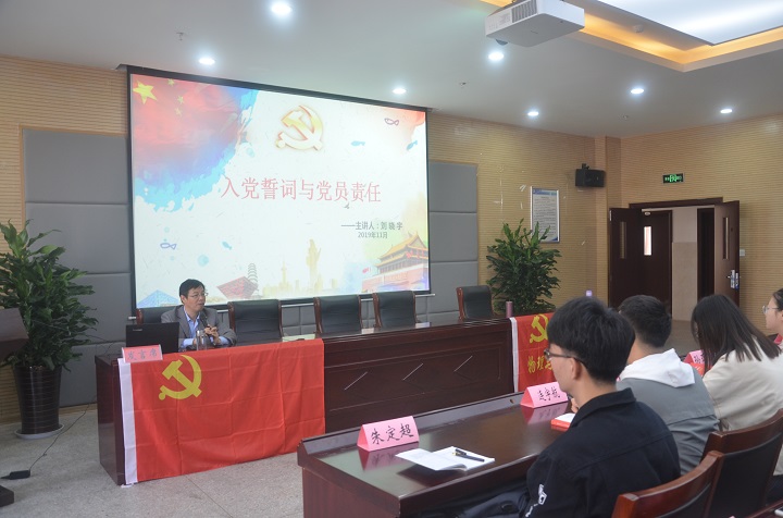 刘晓宇老师以《入党誓词与党员责任》为题,与全体学员一起从入党誓词出发探讨党员肩负的责任。他从入党誓词的沿革、入党誓词的释义和党员的责任三个方面进行讲解,结合党在不同时期入党誓词的变化让学员们了解到党的与时俱进与先进性。担当时代责任,勇于砥砺奋斗是新时代大学生应当具备的精神,也是培训班全体学员在成为正式党员的道路上所必需的素质。学员们应认真学习和宣传党的方针路线,不断完善自己,具有共产主义道德观和社会主义风尚,并能在日常生活中做好先锋模范作用。