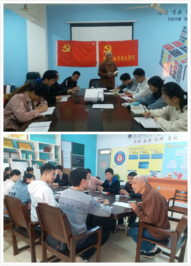 刘燕)为全面学习贯彻习近平新时代中国特色社会主义思想和党的十九大精神,深入推进“不忘初心、牢记使命”主题教育,发挥离退休老党员队伍参与党建工作、引领思想认识上的积极作用,加强师生之间的交流沟通,学院分党校组织关工委退休老党员与全体学员一起开展了几堂特殊的党课。