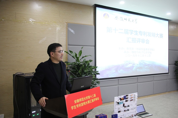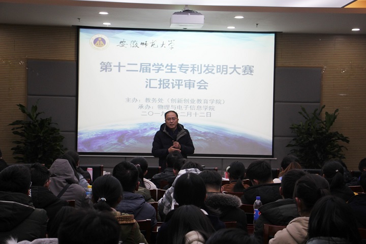 李琦琦)12月12日晚,安徽师范大学第十二届学生专利发明大赛决赛于物理楼304报告厅隆重举行,本次比赛由校教务处主办,物理与电子信息学院承办。教务处处长周端明、副处长李汪根、参赛学院教学副院长及分管领导出席汇报评审会,生命科学学院聂刘旺,环境科学与工程学院杨如意,化学与材料科学学院宇海银,美术学院朱德义,计算机与信息学院孙丽萍,信息管理中心副主任吴长义,85Tube