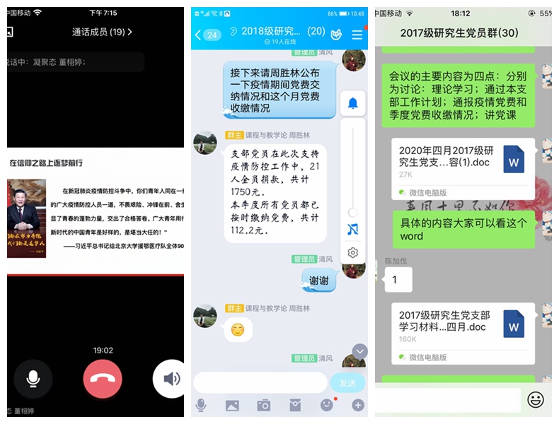 院党委书记李娟在电子教工支部讲了题为“疫情之下高校教师党员的责任与担当”,物理二教工支部邀请校教务处副处长崔光磊讲专题党课,副院长张其芳在通信教工支部讲了题为“抗击新冠病毒疫情伟大成就,彰显中国共产党人的初心使命”的党课。15个支部学习主题明确,线上线下开展宣传教育。全体党员自觉遵守党的纪律,认真贯彻落实重要讲话精神,积极参与和完成疫情防控阶段性任务。