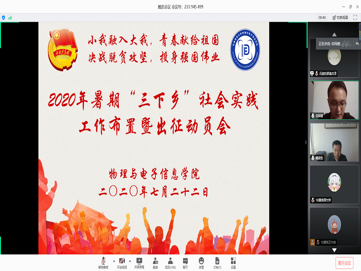召开2020年暑期“三下乡”社会实践线上工作布置暨出征动员会。学院党委副书记黄友生、全体专兼职辅导员、院团委全体成员以及2018级、2019级本科生代表参加会议。会议由学院团委书记宋凤楼主持。