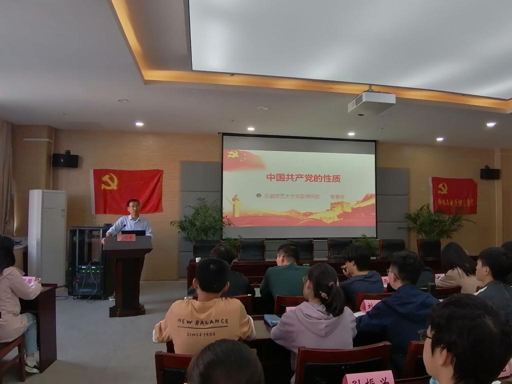 )为加强青年大学生对党的理论知识的学习,端正入党动机,提升思想认识,10月11日上午,校党委常委、组织部部长季爱新应邀于物理楼304为分党校培训班学员讲授中国共产党的性质。